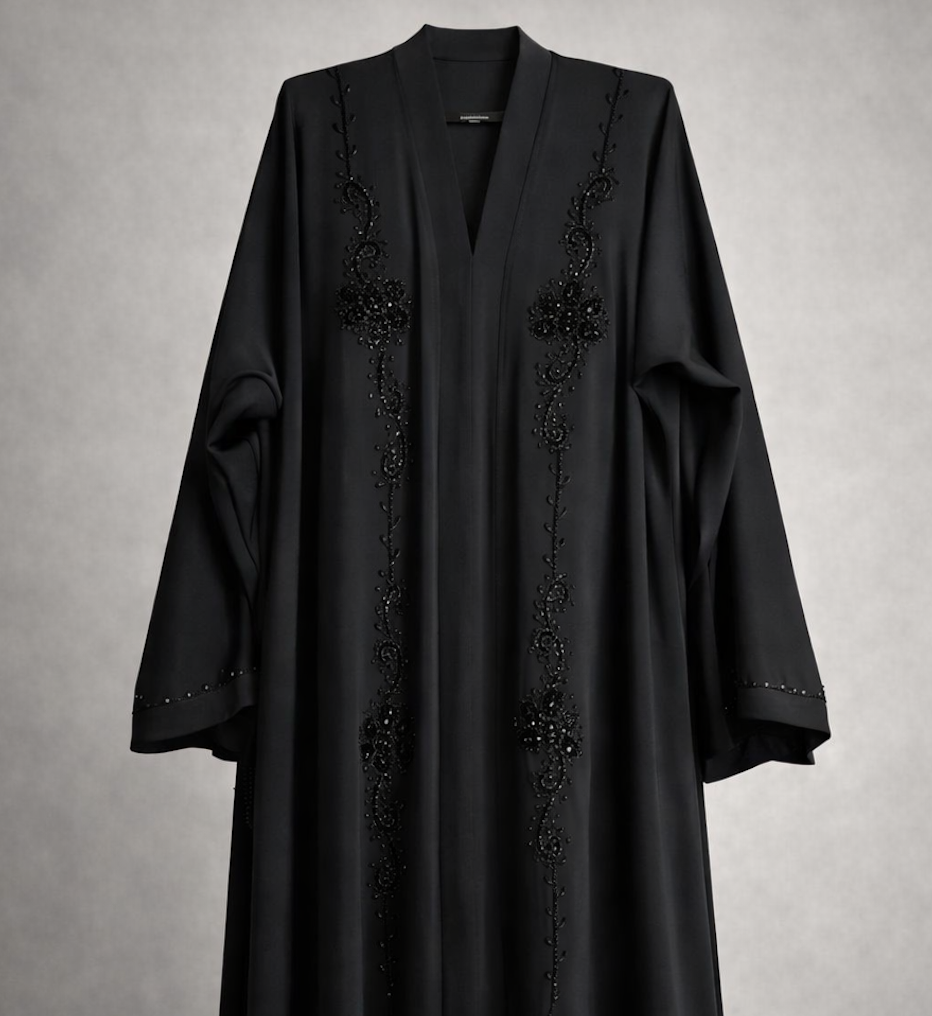 Black Hand-Embroidered Nida Abaya