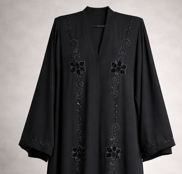 Black Hand-Embroidered Nida Abaya